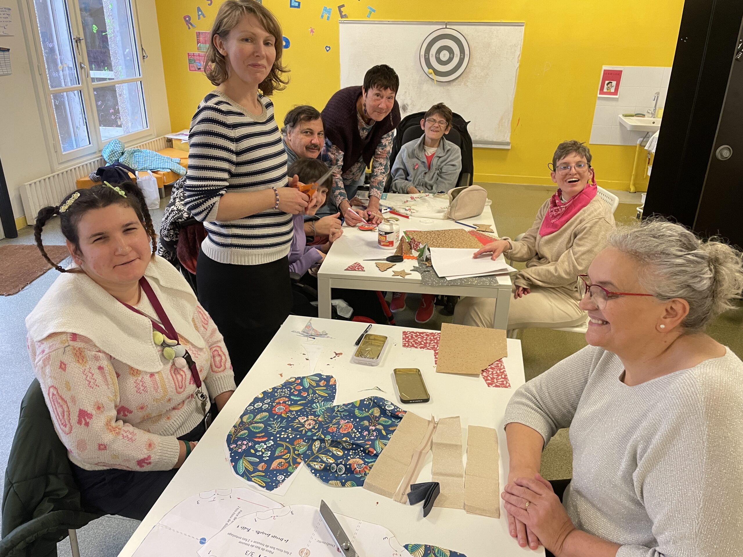 Jeudi 22 mai Accueillis à la galerie du 19M*, nous avons réalisé des pièces en feutre, des fleurs et des porte-clés. Nos créations sont maintenant accrochées sur des grands panneaux qui vont partir s’exposer au Japon ! Un peu de notre GEM à l’étranger… * le19 M a pour vocation de mettre en valeur les savoir-faire des artisans et des créateurs de mode.